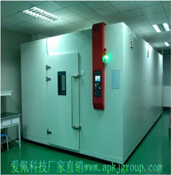 步入式高低溫恒溫恒濕房是由優質碳素鋼板,表面作靜電彩色噴塑處理+聚胺標準保溫板、型材模塊化結構組合式安裝的大型試驗房。本試驗房用于給大型的工業待試產品如汽車配件、電視機配件或成品、長型燈具、大型顯示器、玻璃制品、光電通訊產品、儀器儀表、電工、電子產品、化工涂料、家用電器、航空航天及各種工業產品及相關產品的零部件在高溫、低溫、恒溫、恒濕、的環境下生產、貯存、運輸、使用時的提前適應性批量試驗或抽檢試驗。步入式高低溫恒溫恒濕房的主要特點就是尺寸大、可以做成單開門或雙開門設計、人及物品可同時進入房間整理,可以隨意步入或步出,愛佩廠家主要根據顧客的產品大小定尺寸后對產品按照國家標準要求在高溫、低溫、恒溫、恒濕、高低溫交變濕熱的條件下對測試物品的物理試驗以及其它相關特性進行環境模擬測試,通過測試結果來判斷測試物品的性能,是否仍然能夠符合預定的要求,以便于檢出不符合標準的產品進行改變設計、改進質量、加強管理鑒定等有極大的幫助。