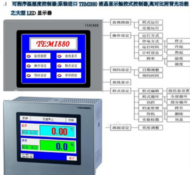 • 微電腦恒溫恒濕試驗機(jī)是一款由微電腦(進(jìn)口可編程觸摸屏控制器)所操控并具備恒溫恒濕功能可做試驗的機(jī)器。愛佩科技使用的高科技人機(jī)介面全觸摸控制器具有眾多功能按鈕欄:用于切換到其他功能界面。“運(yùn)轉(zhuǎn)/停止”按鈕,用于啟動和停止設(shè)備運(yùn)行。在“定值”模式下,可以切換到“定值設(shè)定畫面”。在“程式”模式下,可以切換到“程式設(shè)定畫面”。監(jiān)視參數(shù)顯示欄:顯示溫度和濕度的當(dāng)前測量值和設(shè)定值等。運(yùn)行信息提示欄:顯示運(yùn)行之相關(guān)信息。溫度/濕度整定按鈕:用于自動整定溫度和濕度之PID控制參數(shù)。顯示/隱藏按鈕:用于選擇是否顯示該監(jiān)視變量對應(yīng)之曲線。左移和右移按鈕:用于移動曲線。刪除曲線:將當(dāng)前顯示的曲線刪除掉。